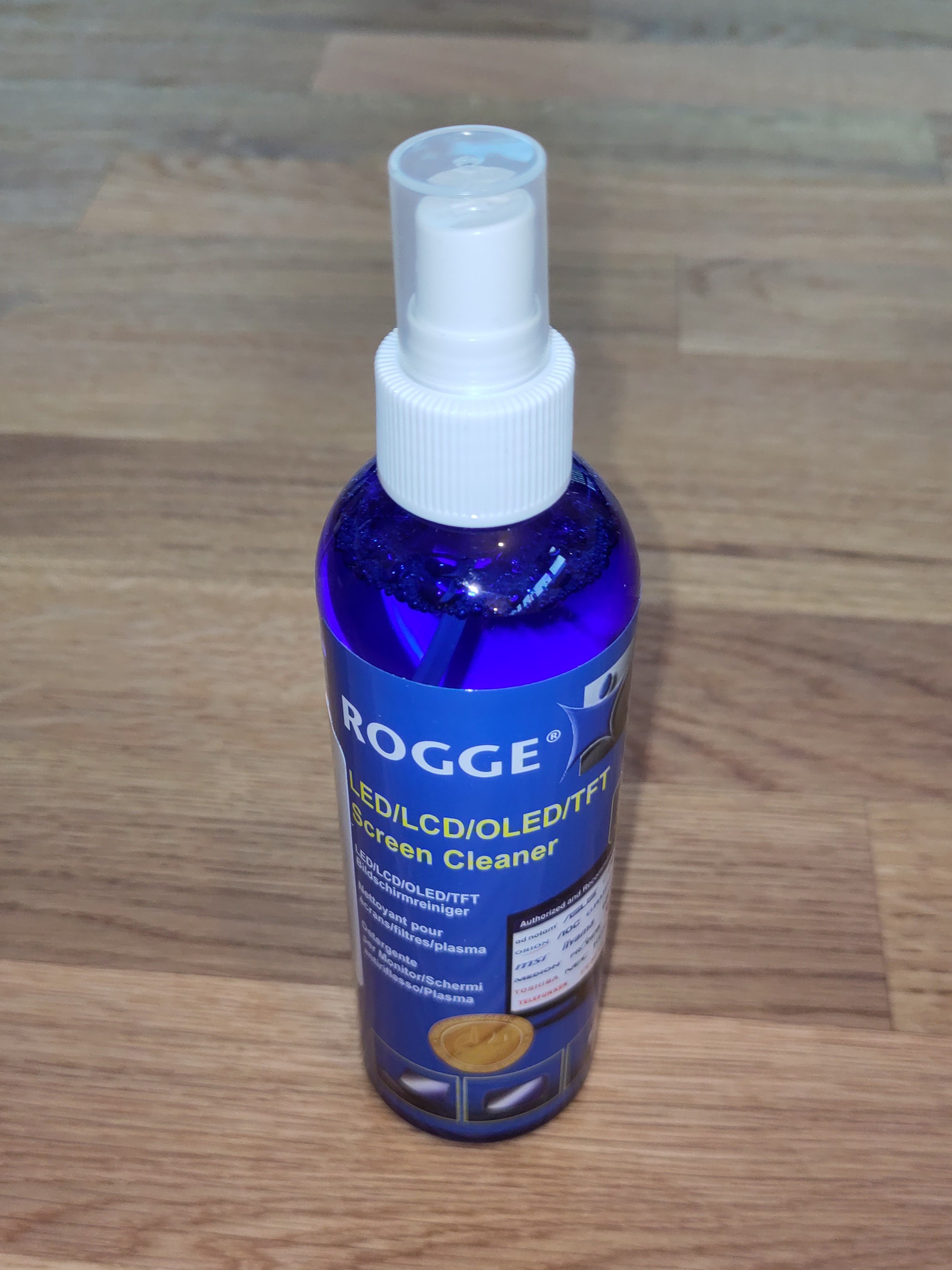 Eine typische Flasche mit Bildschirmreinigungsflüssigkeit.