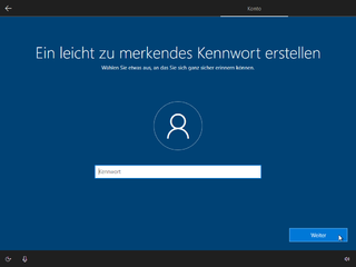 Unter dem Installationsschritt Konto wird das Kennwort des Hauptbenutzers abgefragt.
